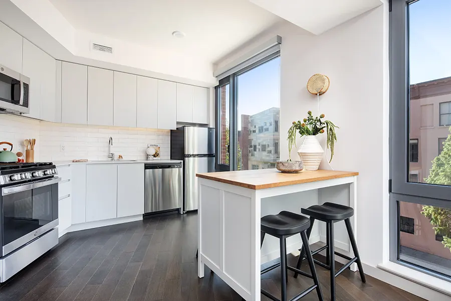 Oversized windows bathe your space in natural light, emphasizing the inherent charm of your home. Durable materials like porcelain tiles, white Caesarstone countertops, and Brazilian hardwood floors add subtle elements of warmth and comfort. Unique layouts create space for quiet work from home nooks or large dinner gatherings, which ever suits your lifestyle best.